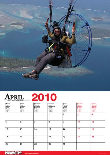 Cross Country and Paramotor magazines have teamed up to bring you the Fly Forever 2010 calendar. Packed with paragliding and hang gliding images on one side, and paramotoring on the other, the calendar will brighten up your room for a year whilst ensuring you don’t forget your appointments.