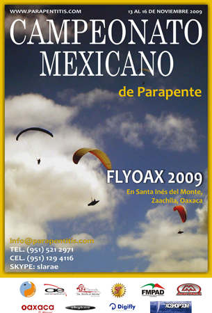 Parapentitis.com are running a new national competition in Oaxaca, southern Mexico from 13 – 16 November 2009. Pilots should pre-register online.
