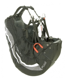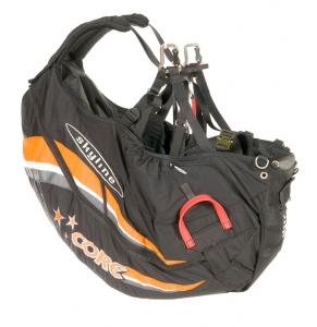 The Core freeride harness has complete foam protection and excellent comfort and well padded shoulder straps, yet it has become smaller and lighter to carry. The geometry of the harness system is sportier than that of the Pure, with deeper main suspension. A huge back stowage pocket does not compromise the compact outline of the harness, and free-sliding shoulder straps allow the pilot easy position changes.